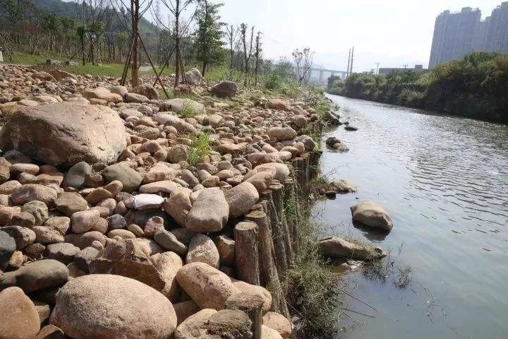 木樁卷包護岸是以木樁護坡、卷包覆面護土的天然材料護岸,網(wǎng)狀的卷包內(nèi)填礫土或椰殼等,為植物和小型動物提供繁殖空間。